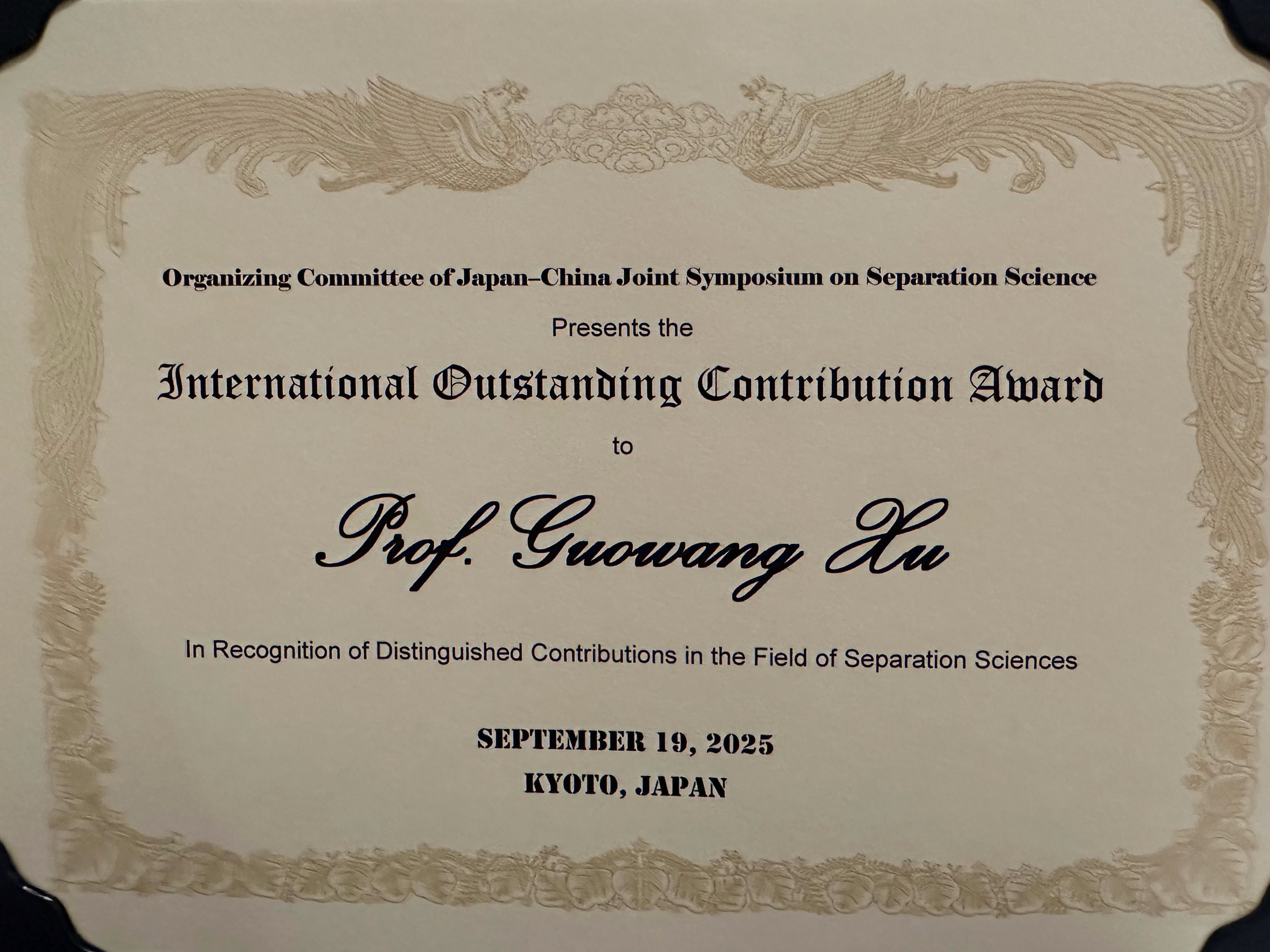 许国旺研究员在中日分离科学联合会议上获“国际杰出贡献奖”